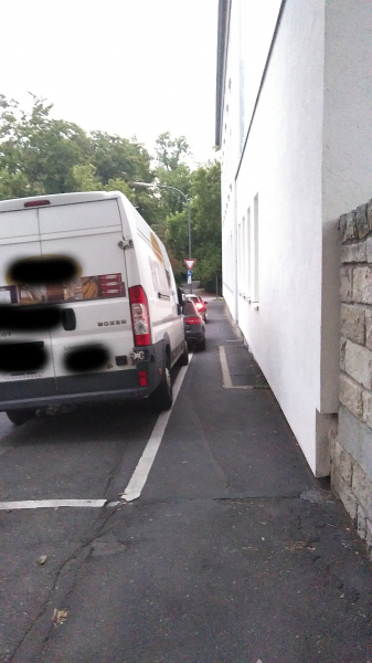 Der Gehweg ist an dieser Stelle viel zu eng. Oft ist dieser zusätzlich noch mit KFZ verstellt, die weit in den Gehweg hinein ragen. Das ist insbesondere deshalb ärgerlich, da sich auf der anderen Seite ein Kindergarten befindet.