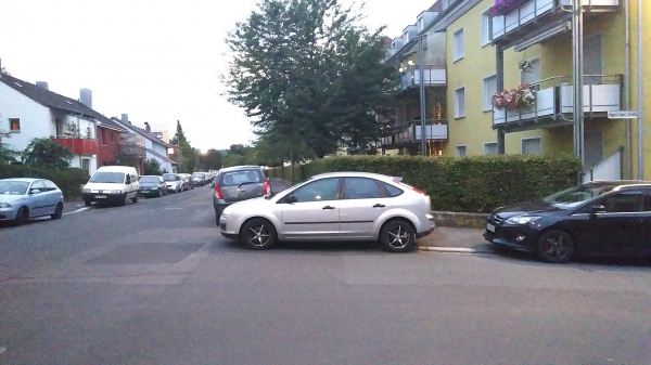 Hier stehen oft KFZ auf dem Gehweg. Das Überqueren der Straße gestaltet sich daher kompliziert und gefährlich.