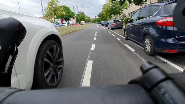 Eine 1,5 Kilometer lange Hauptachse des Radverkehrs wurde in Würzburg hier sehr unsicher gestaltet. Die Frankfurter Straße. Vorher: Schlechter Radweg (Hochbord). Jetzt muss der Radverkehr auf der Straße mitfahren. Überholabstand oft nur 50 cm.